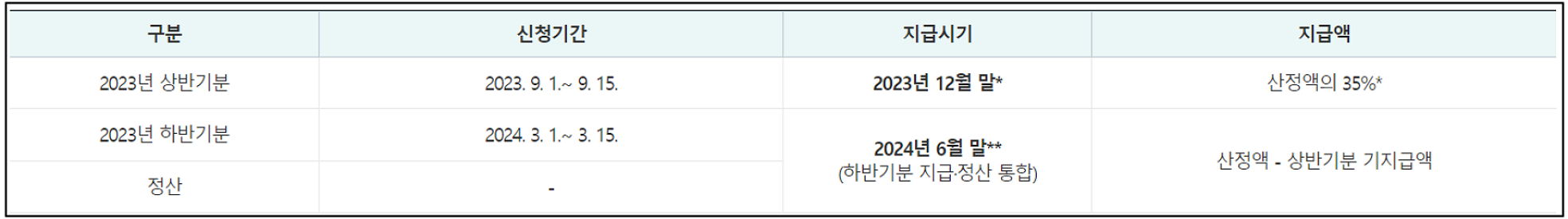 단) 근로소득자의 경우 연 2회 기준으로 지급되는 반기 신청도 신청하실 수 있습니다.