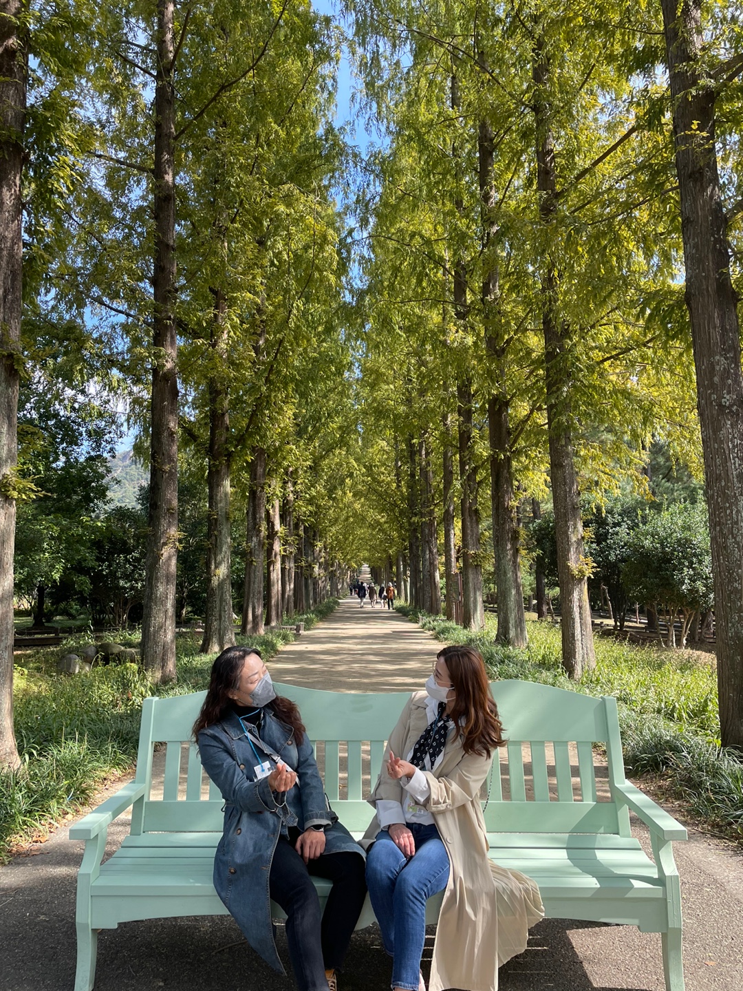 나주 산림자원연구소의 첫 눈마주침은 메타세콰이어길입니다. 길게 쭉 뻗어있는 메타세콰이어 나무가 만들어주는 가을은 보기만 해도 가슴이 탁 트이고 아름다운 풍경 덕분에 셔터만 눌러도 작품이 되는 대표적인 포토존입니다. 담양 메타세콰이어길만 생각했는데 사계절 아름다운 풍경을 주는 나주 산림연구소 치유의 숲이 나주 가볼만한곳으로 추천하는 이유를 잘 알 것 같았습니다.