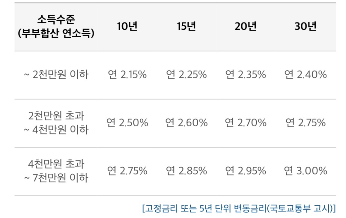 ※ 5년 단위 변동금리 이용자에 대해 고정금리로 금리 방식 변경 1회 신청 (22.10.21 ~ 23. 04. 20. 한시)