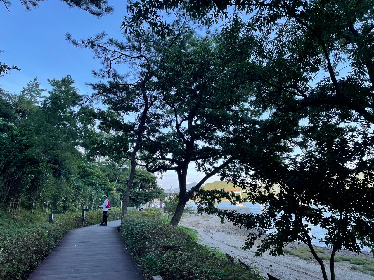 청자타워 대신 오른쪽 숲길을 이용해서 천천히 해변을 따로 걸어보니 공기도 좋고 풍경도 너무 예쁘고 딴 세상에 온 것 같은 착각이 들정도로 편안했어요. 한참을 걷다보니 가을에만 볼 수 있는 밤도 있고 주변 경관이 아늑하고 예뻤습니다. 숲길을 따라 바다에서 나오는 해양 에어로졸과 숲의 피톤치드가 더해진 맑은 공기를 마시며 걸어보니 행복만땅이였습니다.