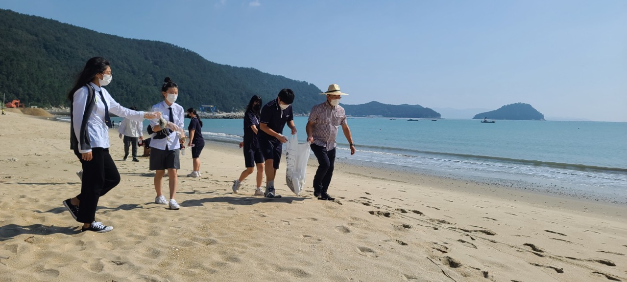 이번 플로깅은 신지중학교 아이들과 우리 고장인 명사십리 해변을 거닐며 해양 쓰레기의 심각성도 알아보고 쓰레기도 주우며 해변을 깨끗하게 청소해 보았습니다. 명사십리해수욕장은 우리 고장의 가장 큰 관광지이기도 하고 매년마다 많은 사람들이 쉬었다 가는 곳입니다. 바람이 불때면 많은 쓰레기들이 해변으로 밀려와서 쓰레기 수거 하시는분들이 거둬들이지만 자연 환경의 영향으로 늘 쓰레기의 양은 계속 늘어갑니다.