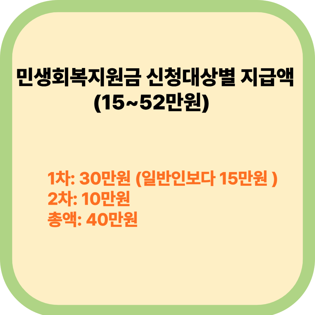 | 기초생활수급자 | 40만원 | 10만원 | 50만원 | 최우선 지원 |