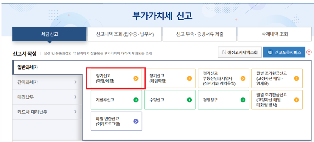 | 제2기 | 예정신고 / 7.1 ~ 9.30 | 10.1 ~ 10.25 | 법인 사업자 |