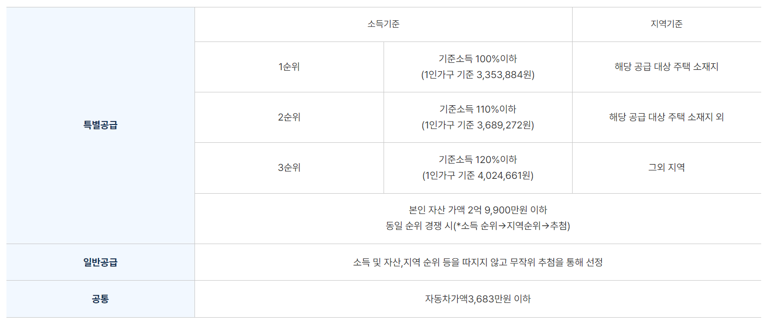 3순위 : 본인 소득 100% 이하 (자산 29,900만원 이하)