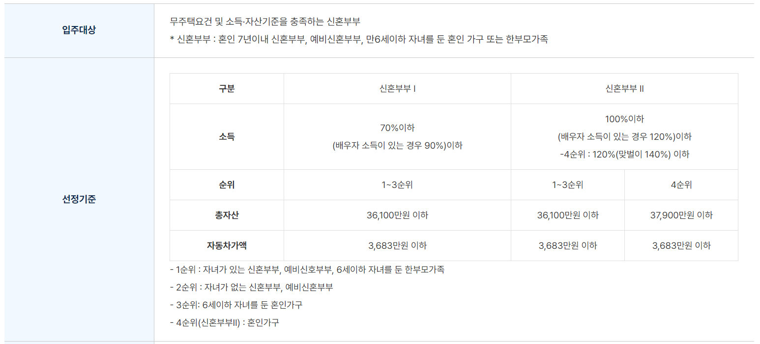 (무주택요건 및 소득. 자산기준을 충족하는 신혼부부)
