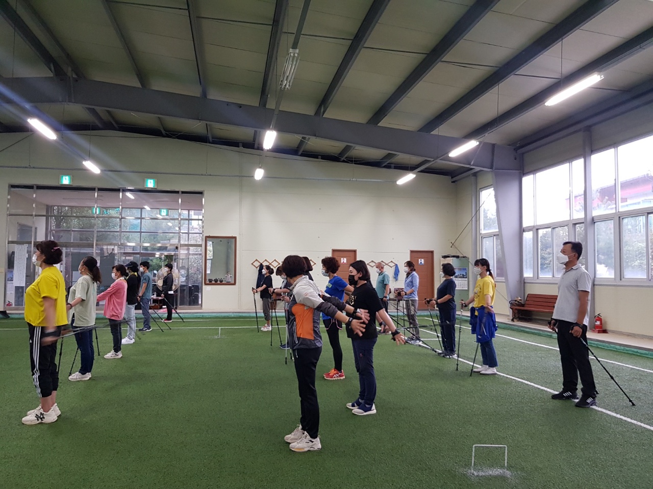 20여분의 스트레칭 과정은 안쓰던 근육과 몸을 이완하기에 충분한 시간이였습니다. 스트레칭이 끝나면 기본걷기 동작을 하고 자세교정을 잡으면서 올바른 스윙 방법, 걷는 방법을 지도했습니다. 평소 일상생활에서 어깨와 목의 경직을 풀어주며 바른 자세로 걷기를 하며 모든 근육을 건강하게 만들어주고 통증까지 없애줄 수 있는 노르딕 워킹은 앞으로 계속 진행 될 예정입니다.