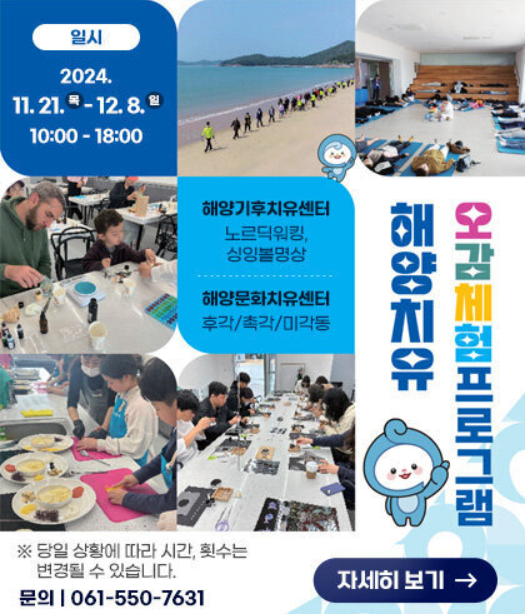 완도 해양치유센터는 해양자원을 활용한 치유 프로그램을 운영하는 곳으로 건강한 프로그램을 제공합니다.