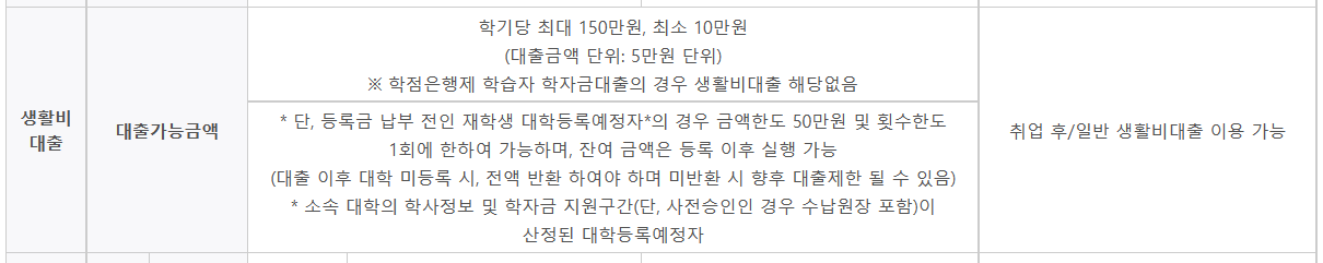 (학점은행제 학습자 학자금대출은 생활비 대출 해당없음)