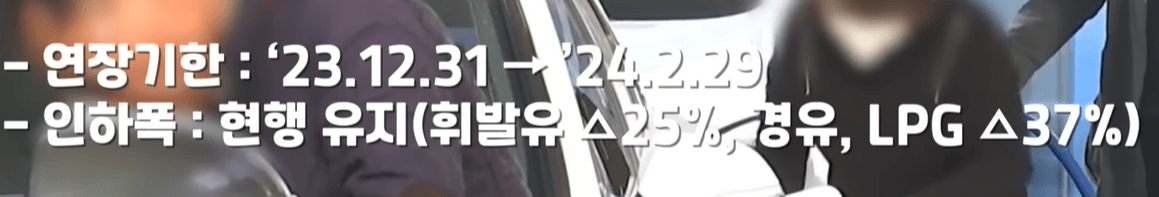 ▣ 유류세 인하 2개월 연장으로 기존 2023년 12월 31일까지 적용이 되었지만 2개월 연장이 되어 2024년 2월 29일까지 적용.