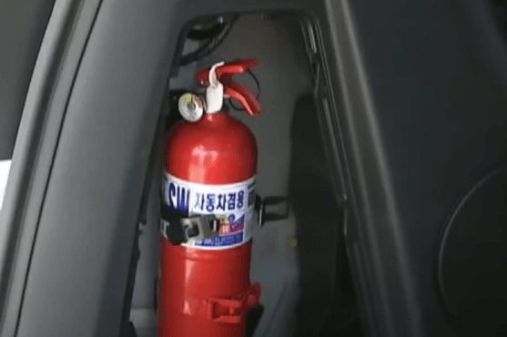 (12월부터 5인승 이상 승용차는 차내에 의무적으로 소화기를 비치해야 함)